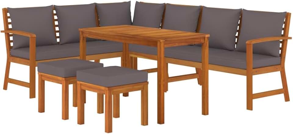 Acacia Wood Patio Dining Set - 7 Piece Outdoor Furniture Set with Cushions, Modular Design, Rustic Charm, Durable and Sturdy, Brown Dark Gray