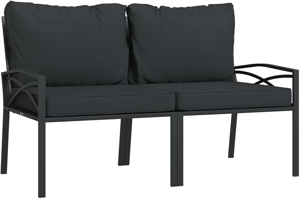 Black Steel Patio Chairs with Gray Cushions - Set of 2 - Easy-to-Assemble Comfortable Outdoor Seating with Elegant Armrest and Backrest Design for Garden and Terrace