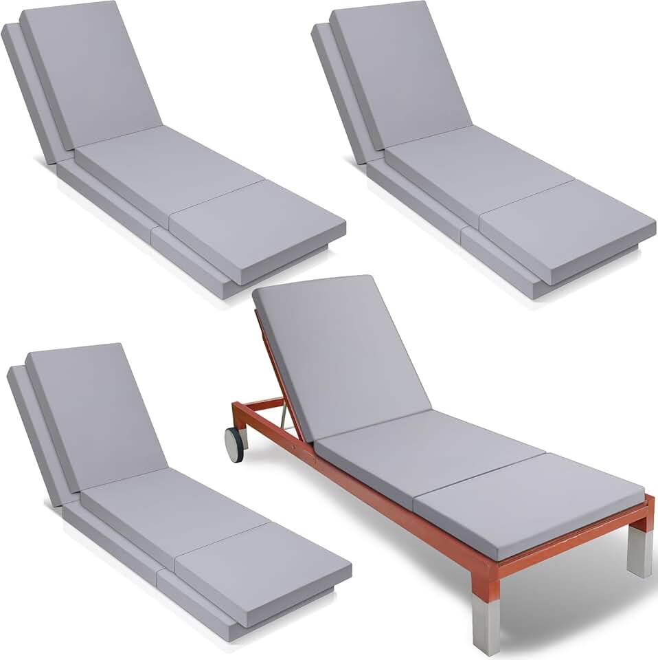 Pinkunn Chaise Lounge Cushion Waterproof Outdoor Lounge Chair Cushions 21 x 72 x 3 Inch Bench Seasonal Replacement Cushions for Summer Patio Bench Pool Beach (Gray,6 Pcs)