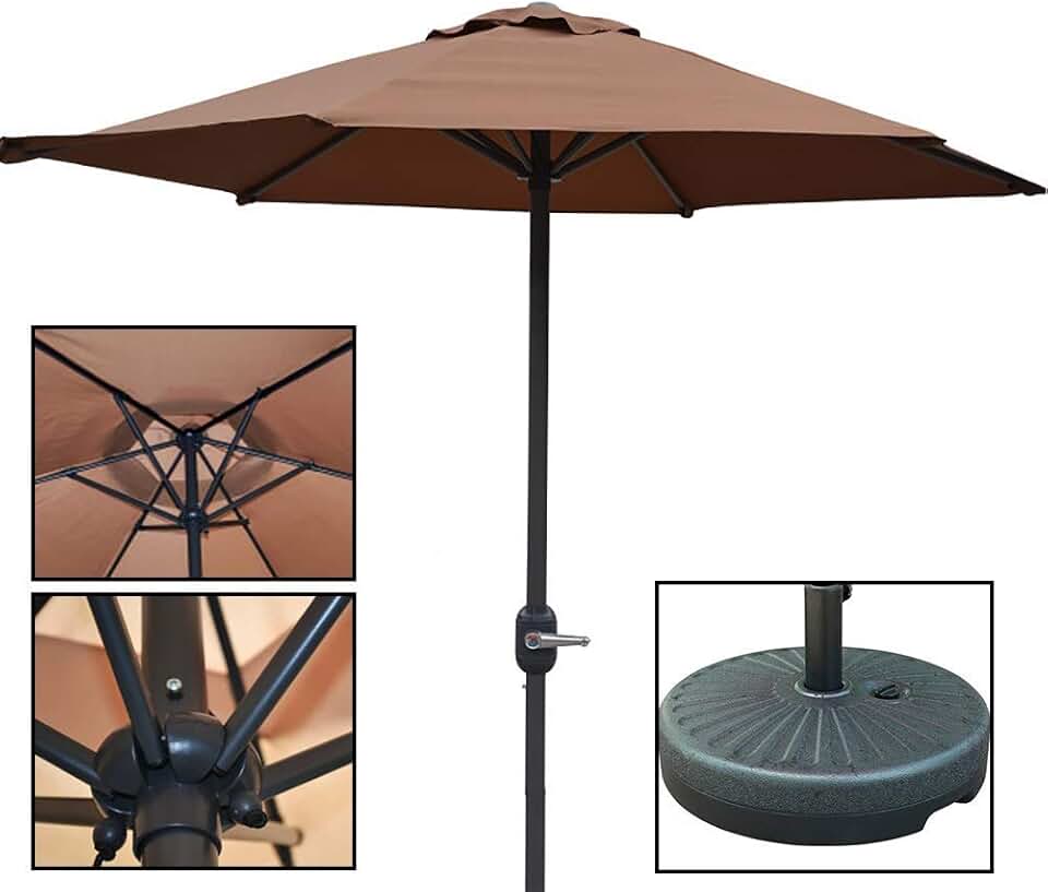 Parasol Umbrella Brown Windproof Patio Umbrella, Perfect Outdoor Table Umbrella with Crank Lift Handle, 6.6 Feet for Gazebo Dock, UV Protection (Color : with Base)