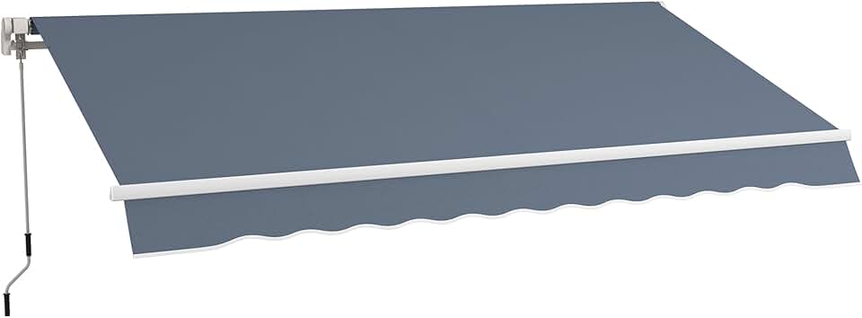 12' x 10' Retractable Awning Patio Awnings Sun Shade Shelter with Manual Crank Handle, 280g/m? UV & Water-Resistant Fabric and Aluminum Frame for Deck, Balcony, Yard, Charcoal Gray