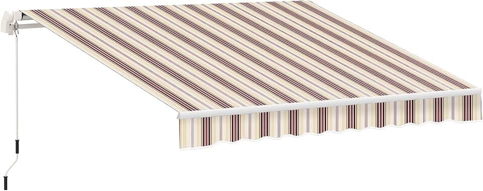 HongK- Retractable (8.2'×6.5') Manual Awning Aluminum Patio Sun Shade w/Crank Handle Water-Resistant Polyester Outdoor Patio Awning Cover Beige White [P/N: ET-AWNING001-2.5-Beige]