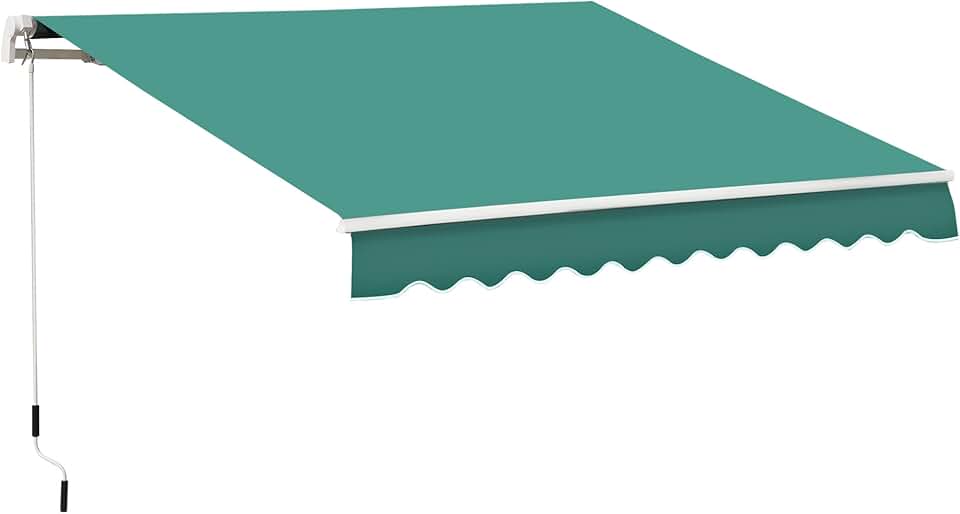 13' x 8' Retractable Awning, Patio Awnings, Sunshade Shelter w/Manual Crank Handle, UV & Water-Resistant Fabric and Aluminum Frame for Deck, Balcony, Yard, Green