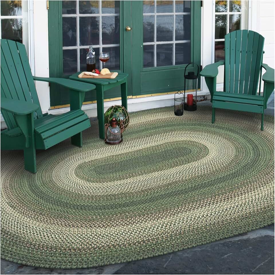 Homespice Cedar Ridge Country Rug Braided Style, Ideal as Olive Green Rugs for Bedroom and Living Room Area Rug - Flat, Spill Proof, and Stain Resistant - Reversible Outdoor Rugs for Patio, 5x8 Feet