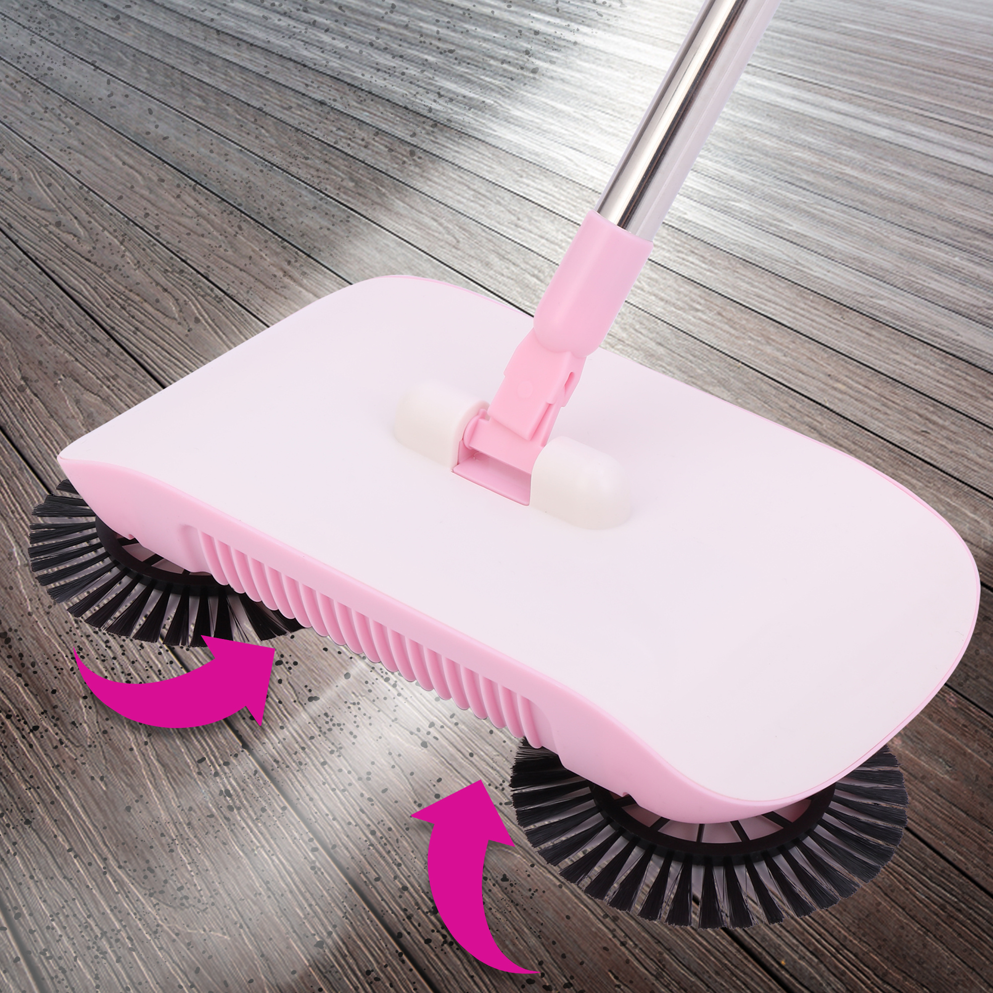 Walk-behind Sweeper Broom Cleaner Carpet Sweeper Cleaner for Home Office Pet Hair Dust Scraps Paper Small Rubbish Cleaning with 2 Corner Brushes,Outdoor Patio Cleaner