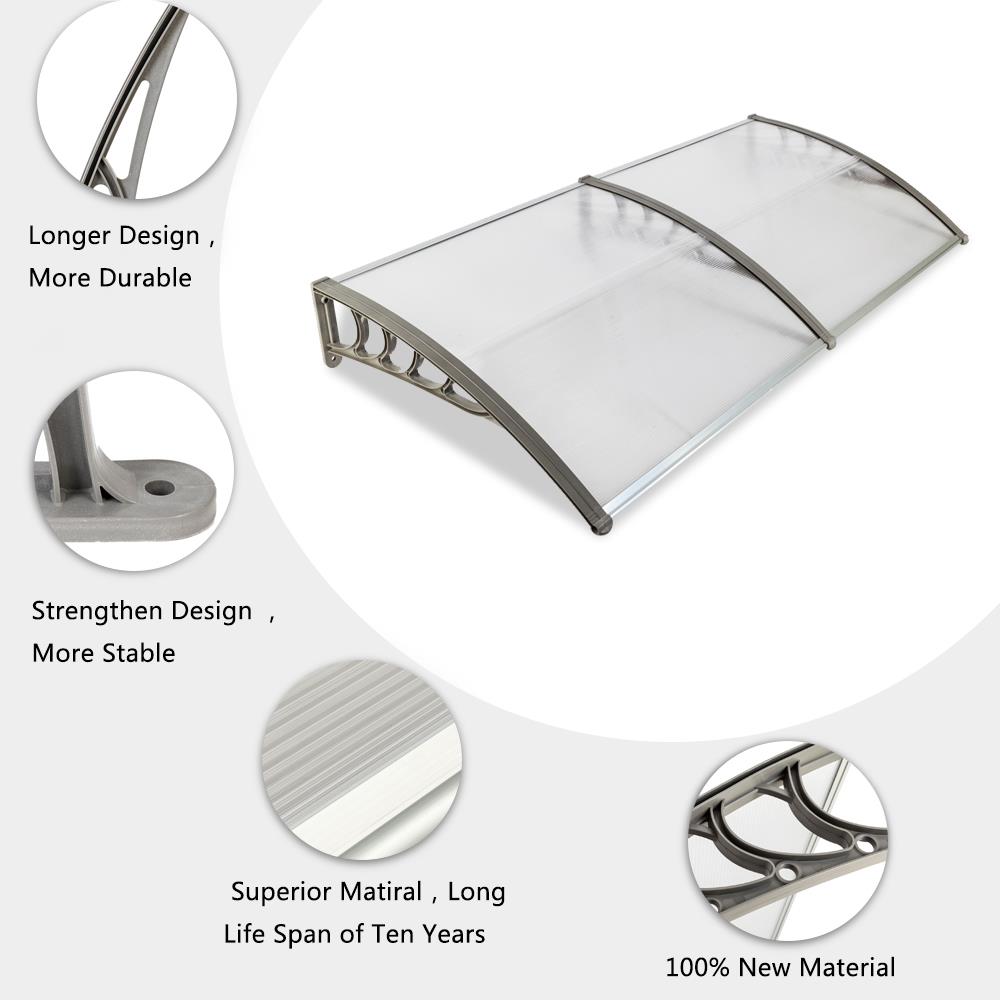 Ktaxon 35.4"X77" Door Awning Polycarbonate Patio Cover Silver & Gray Bracket