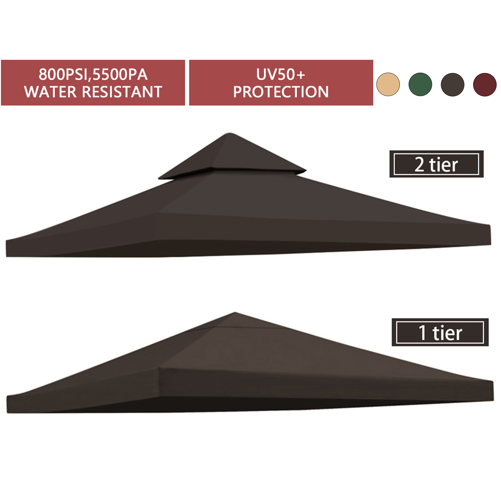 Lovote 10FTx10FT 300D Replacement Canopy Top Patio Pavilion Gazebo 9.84 ft Tent Sunshade Cover Anti-UV Roof Sunshade Coffee