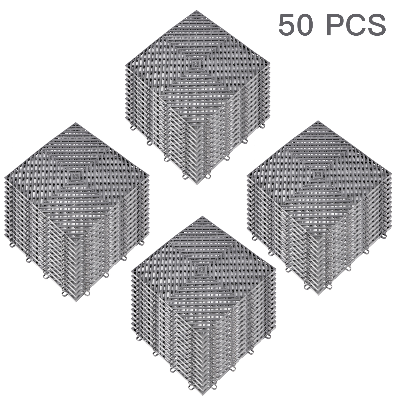VEVORbrand Drainage Tiles Interlocking 50 PCS,Plastic Tiles 12x12x0.5 inches,Deck Tiles Outdoor Floor Tiles, Outdoor Interlocking Tiles,Deck Flooring for Pool Shower Bathroom Deck Patio Garage,Gray