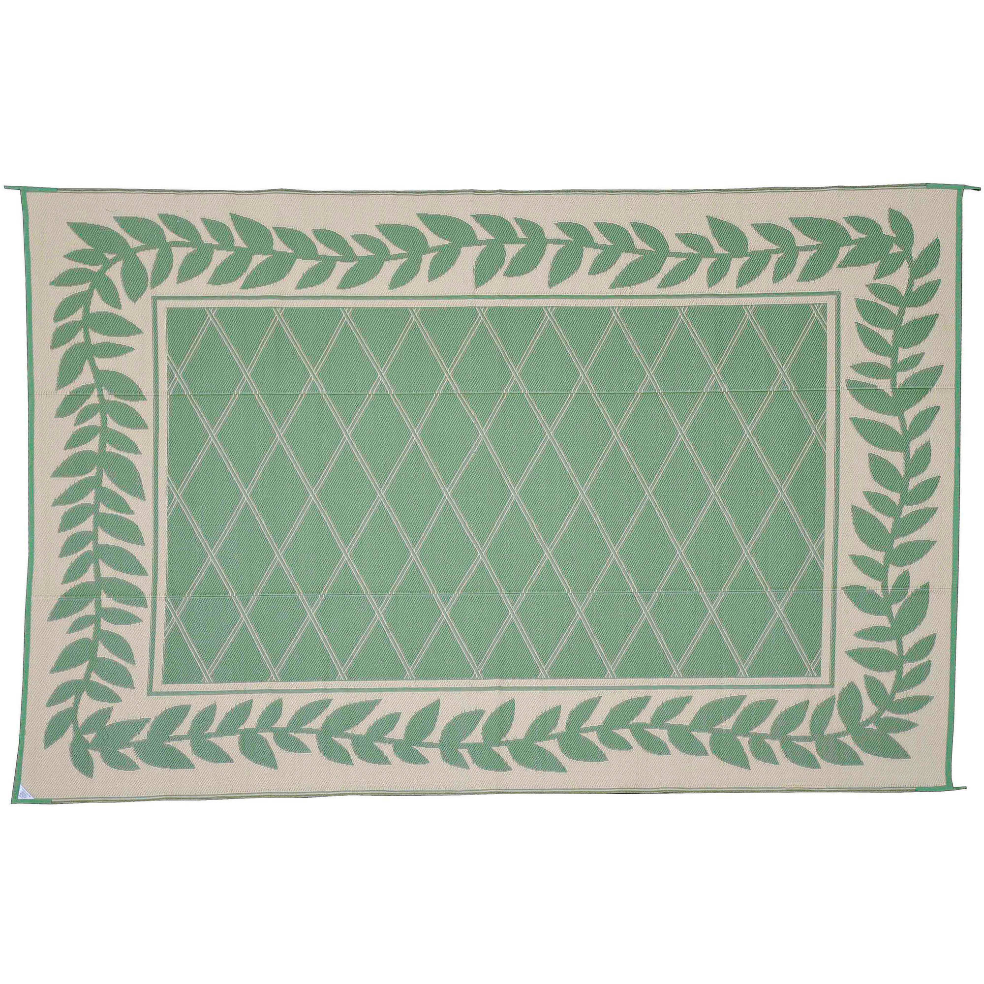 Patio Mats 9x12 Reversible RV Outdoor Patio Mat, Camping Mat, Classic Leaf, Green (Reversible with 2 designs)