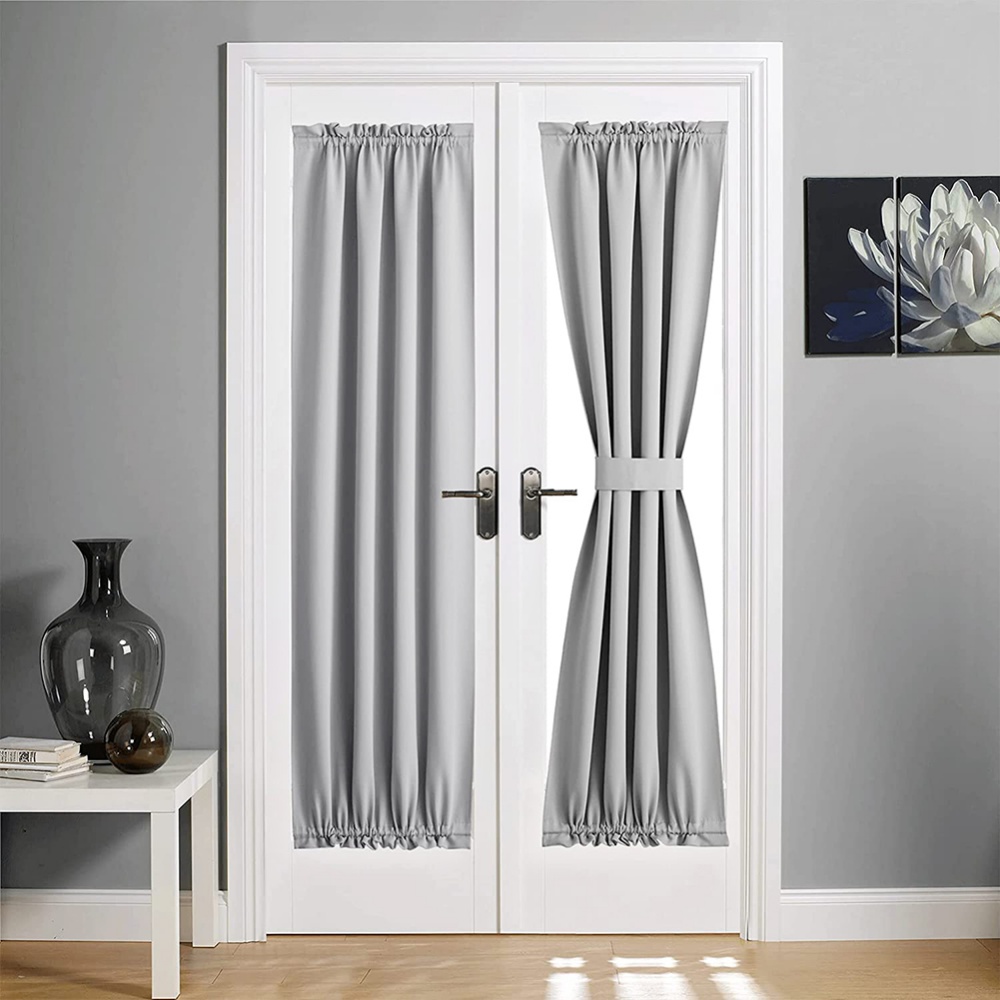 French Door Curtains – Rod Pocket Thermal Blackout Curtain for Doors with Glass Window, Kitchen and Patio Doors for Privacy, 1 Curtain Panel with Tieback