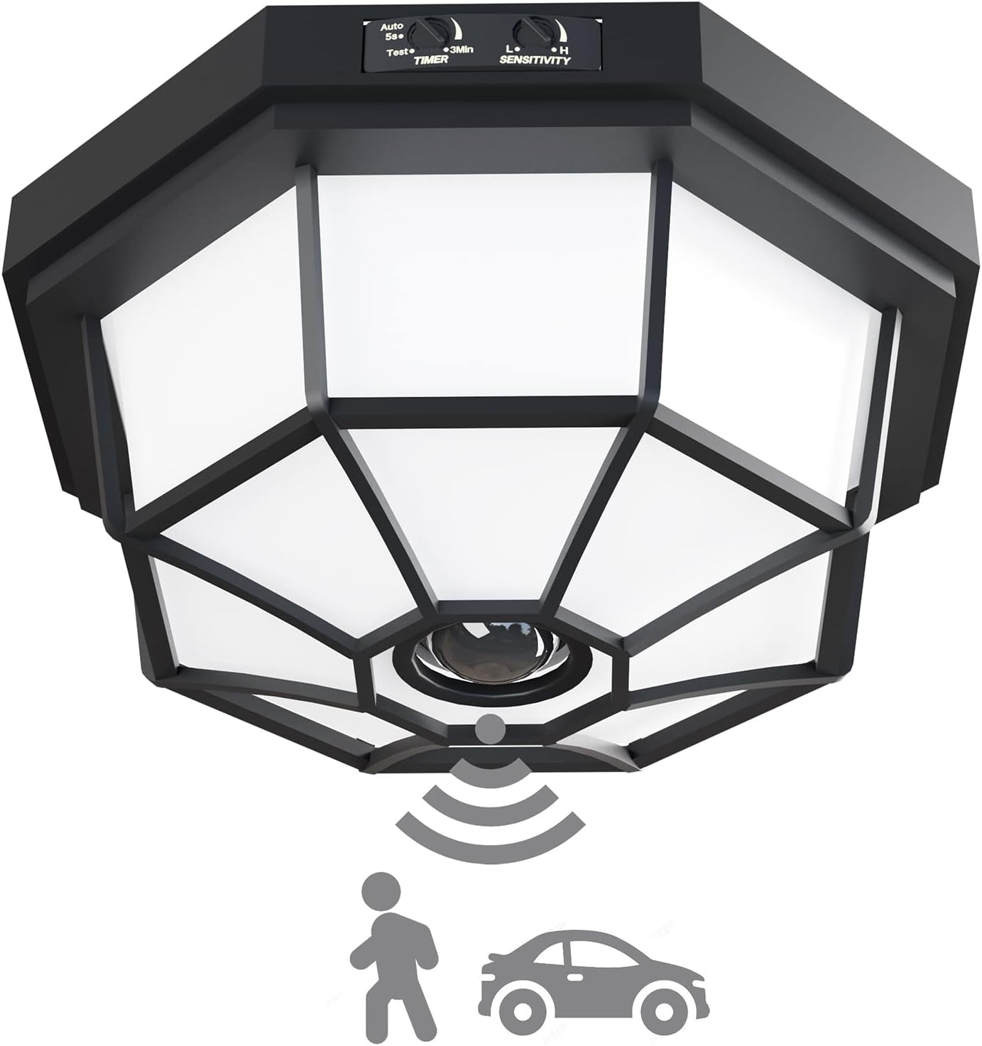 Tivleed Outdoor Flush Mount Motion Sensor Ceiling Light, Black Finish with Frosted Glass, Ideal Exterior Lighting Fixture for Front Porch, Garage, Covered Patio, Entryway, Farmhouse