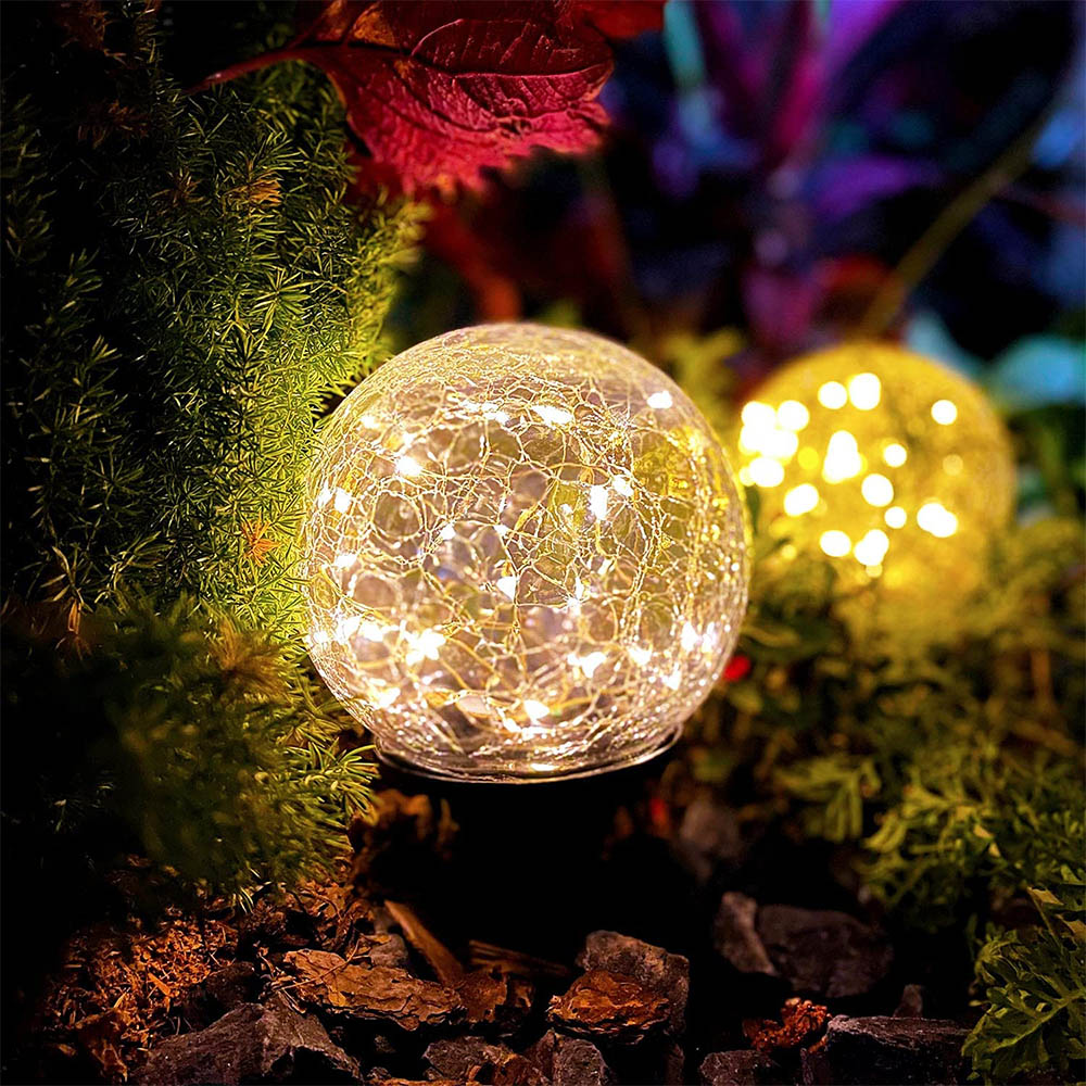 ZOELNIC Garden Solar Lights, Cracked Glass Ball Waterproof Warm White LED for Outdoor Decor Decorations Pathway Patio Yard Lawn,Outdoor Decorations for Patio, 1 Globe (4.72”)