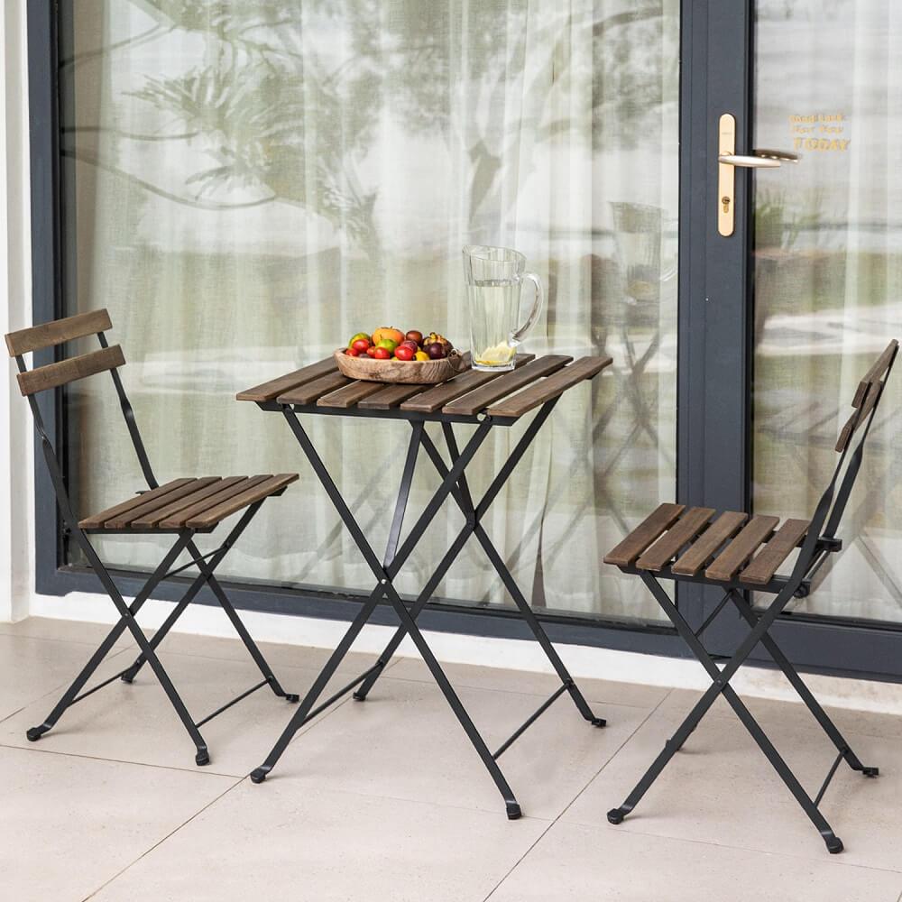 COSIEST 3-Piece Patio Furniture Teakwood Dark Brown Bistro Set, Folding Chairs, Card Table, Steel