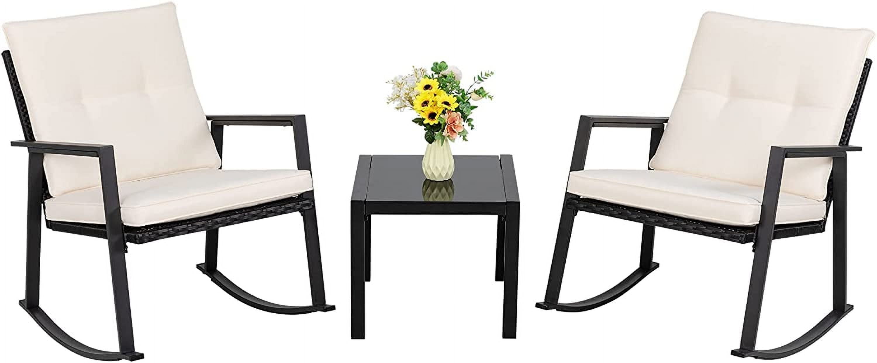 Walsunny 3 Pieces Outdoor Patio Conversation Set Modern Rocking Rattan Bistro Chair Beige