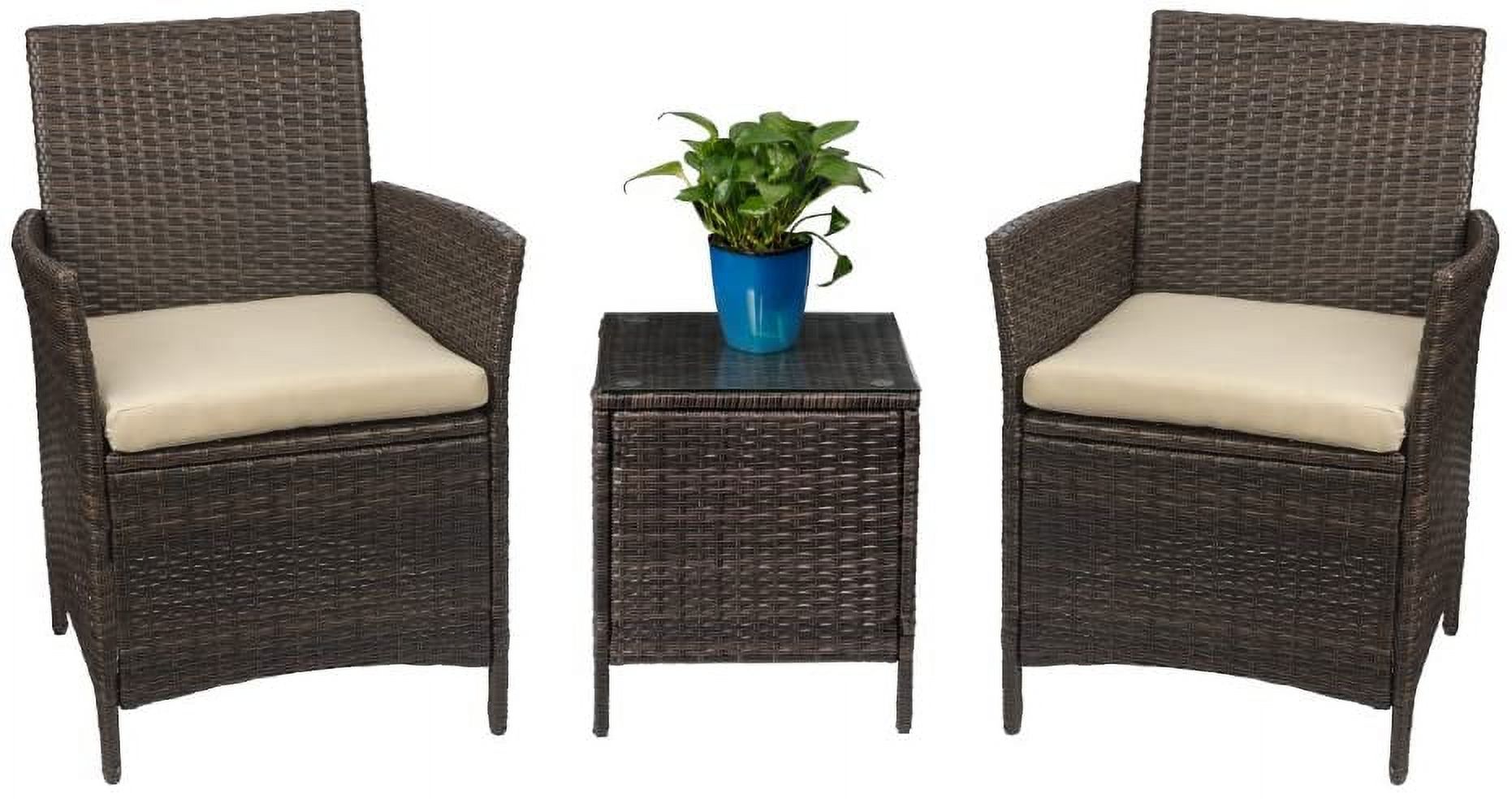 Lacoo 3 Pieces Outdoor Patio Furniture PE Rattan Wicker Table and Chairs Set Bar Set with Cushioned Tempered Glass, Brown/Beige, 2