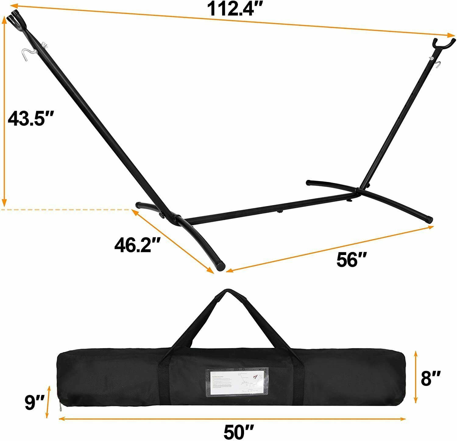 ZENSTYLE 9FT Portable Hammock Stand Patio Outdoor Metal Frame Rack - Black