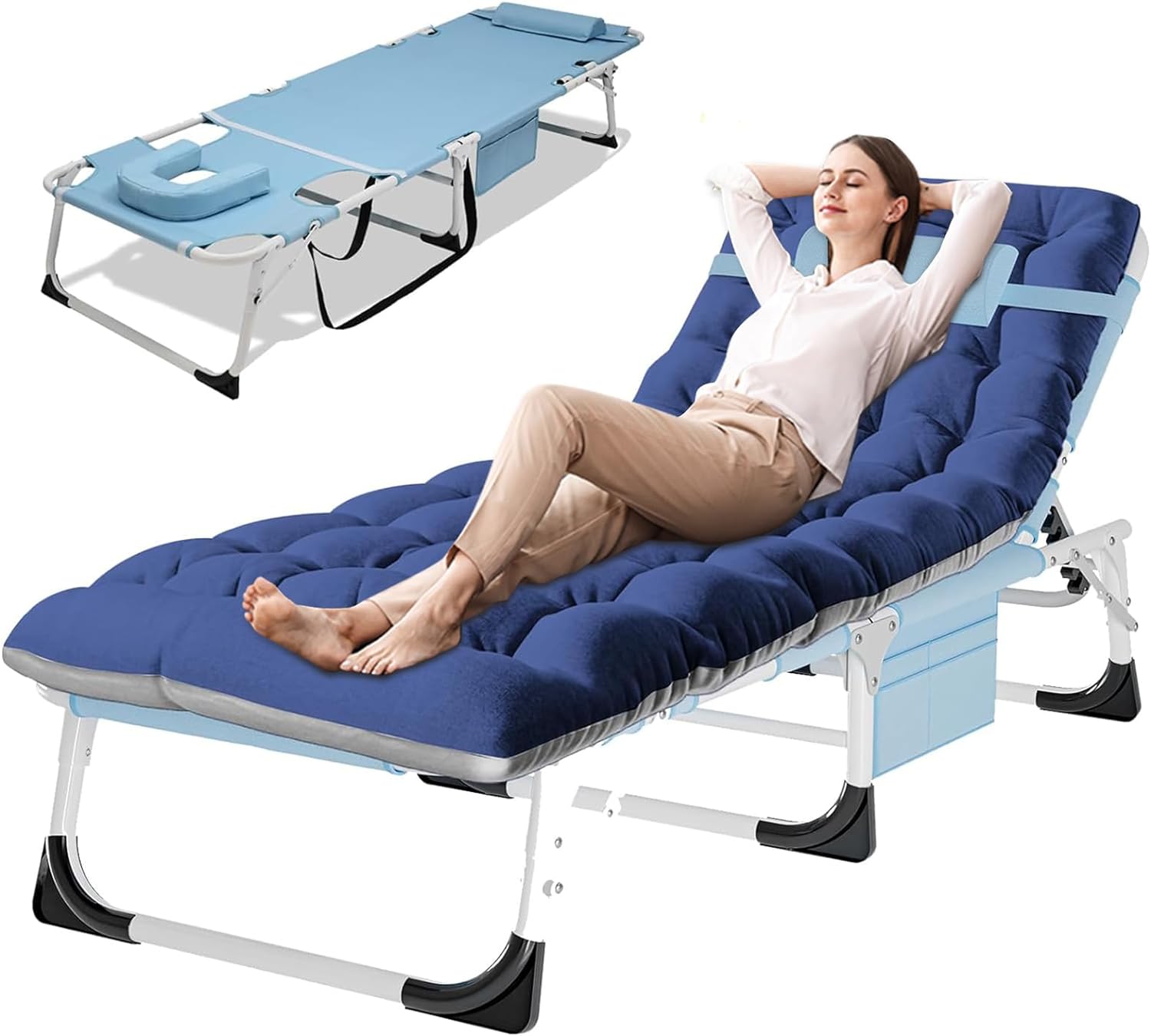 Slsy Face Down Tanning Chair with Face Arm Hole, 5-Position Adjustable Folding Lounge Chair, Folding Sleeping Bed Cot, Folding Chaise Lounge Chair for Pool Beach Patio Sunbathing
