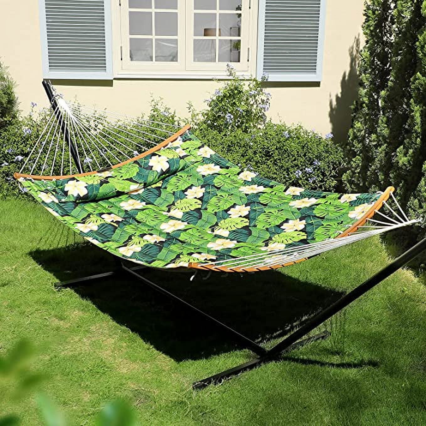 Zupapa 12 Feet Steel Stand with Rope Spreader Bars Hammock Combo 450lbs Capacity, Quilted Polyester Pad and Pillow for Indoor Outdoor Patio Deck Yard