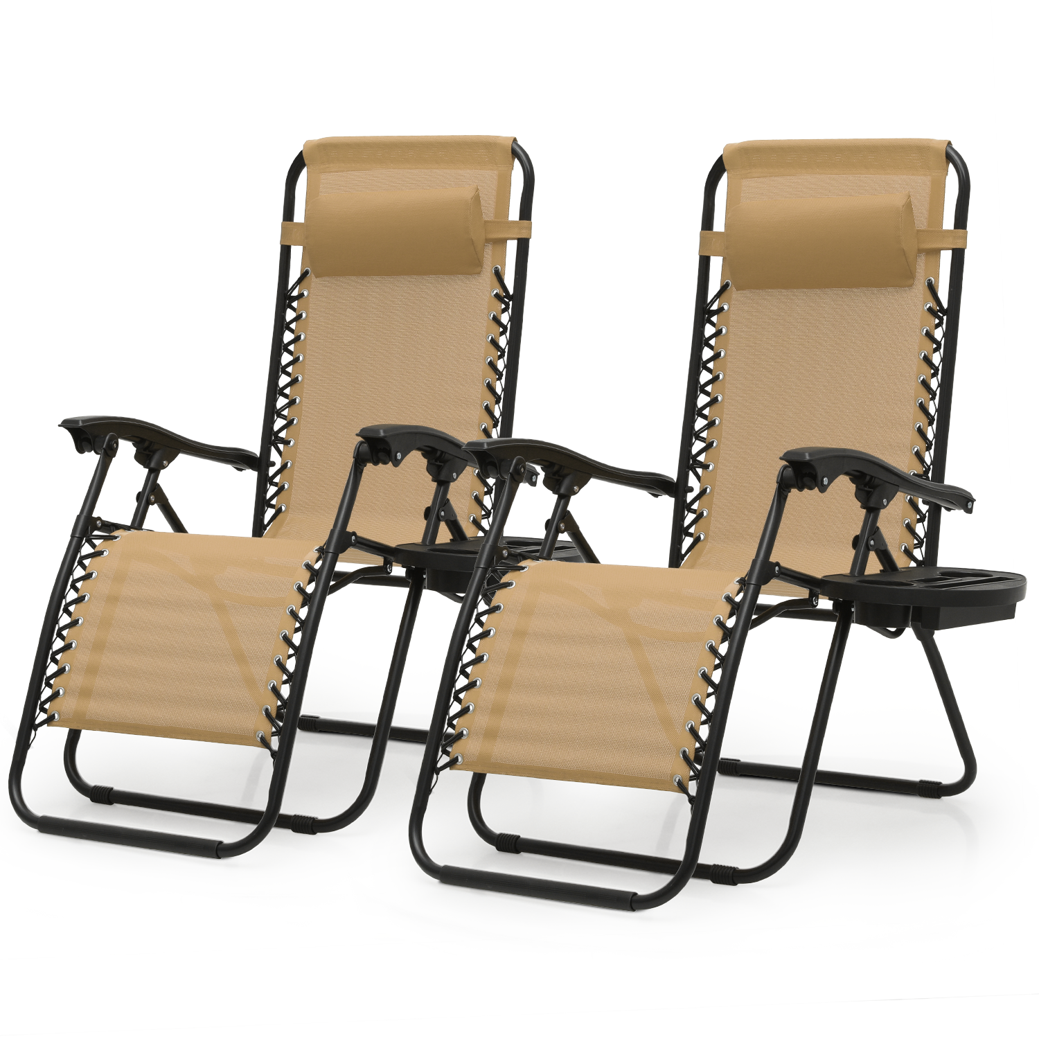 Nazhura Set of 2 Relaxing Recliners Patio Chairs Adjustable Steel Mesh Zero Gravity Lounge Chair Recliners with Pillow and Cup Holder (Khaki)