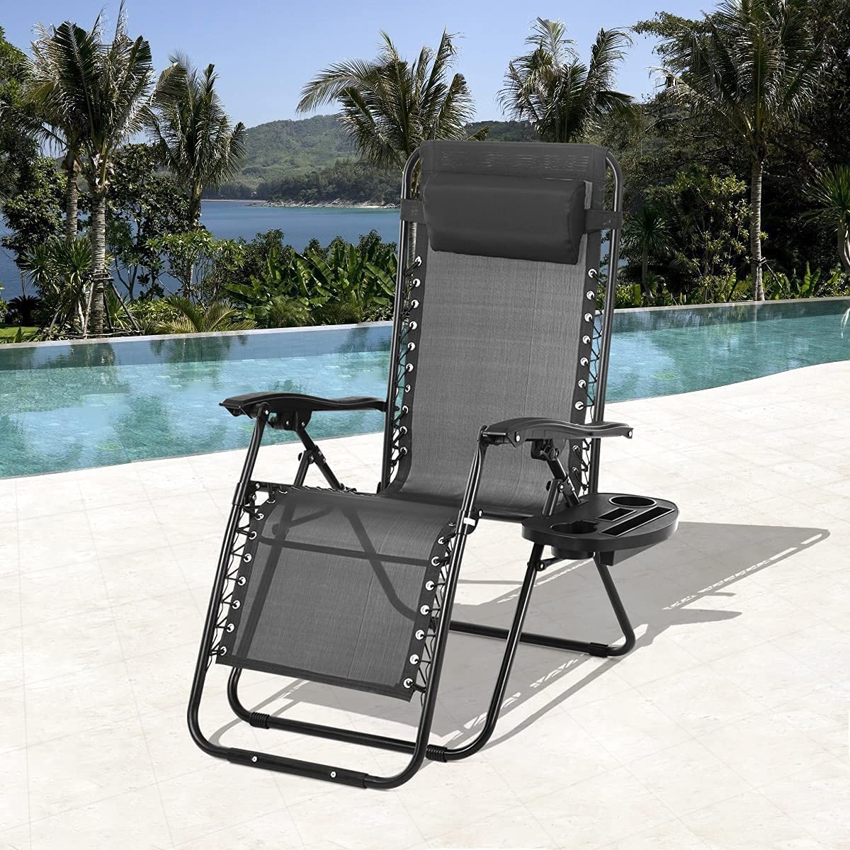 NAIZEA Zero Gravity Chairs, Outdoor Folding Patio Lounge Chair with Mat,Tray,Pillow
