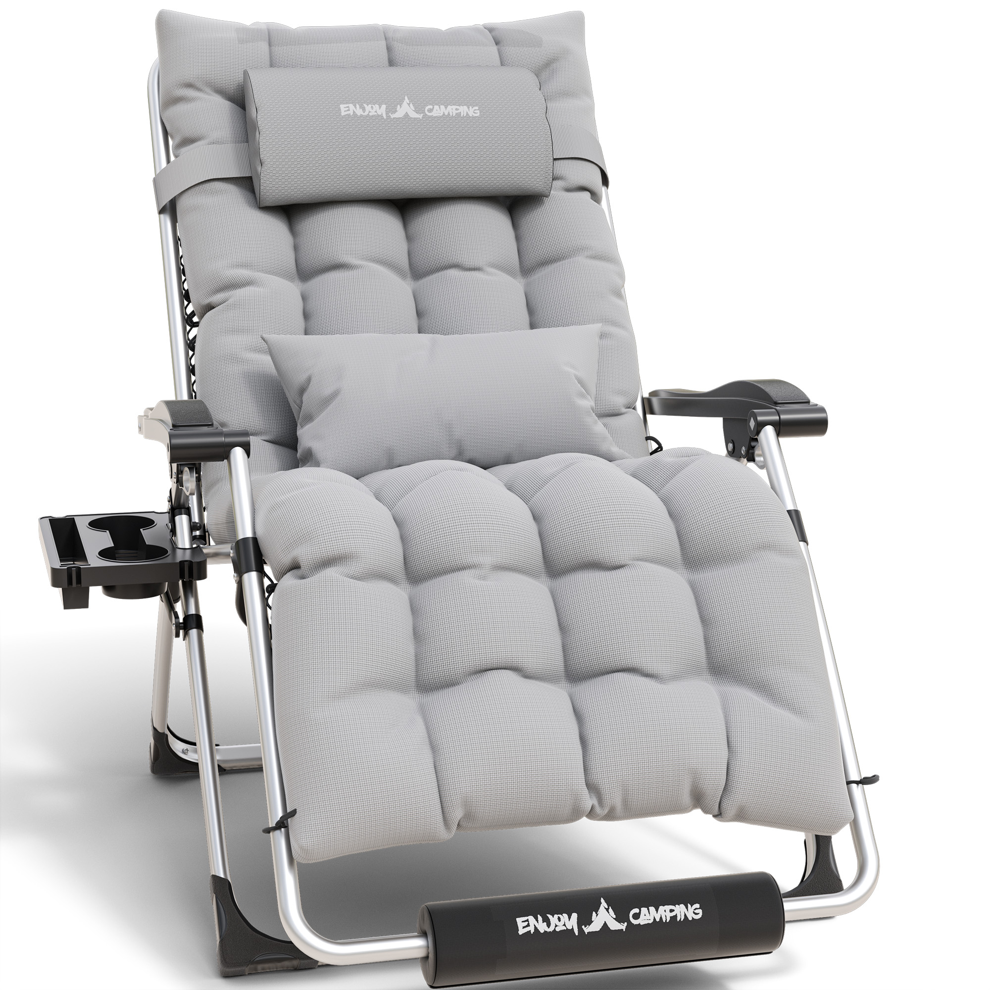 ECOPATIO 500LB Oversized Zero Gravity Chair XL Set of 1, Outdoor Folding Adjustable Recliner with Cushion, Gray