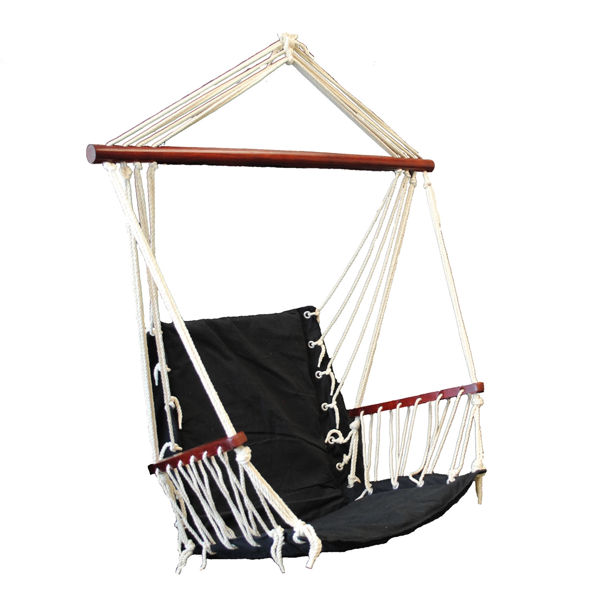 OMNI Patio Swing Seat Hanging Hammock Cotton Rope Chair With Cushion Seat - Black