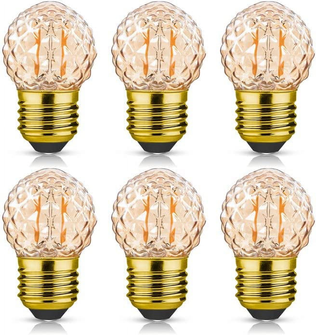 G40 E26 Low Watt LED Amber Light Bulbs, 1W Small Edison Bulb Equal 10 Watt Incandescent,Pineapple Shaped Decor Light Bulb 2200K Warm White for Bedroom Lawn Patio,100 Lumens,Pack of 6