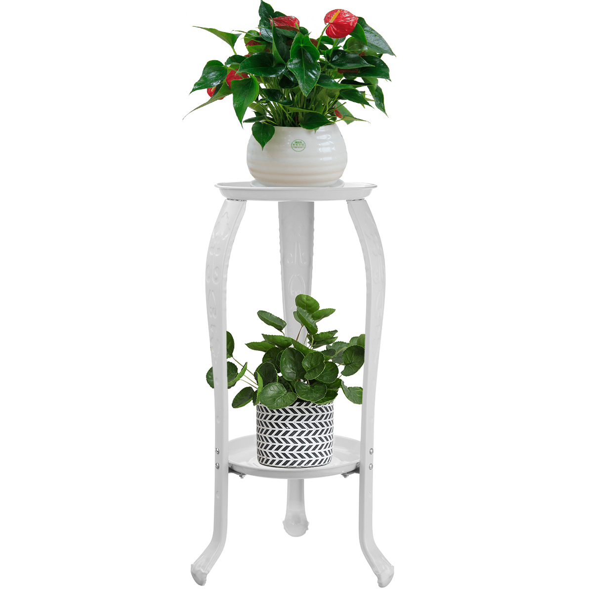 2 Tier Metal Plant Stand, Plant Shelf Flower Pot Holder Display Storage Shelf, Side Table End Table for Indoor Outdoor Patio Garden Home Office, White
