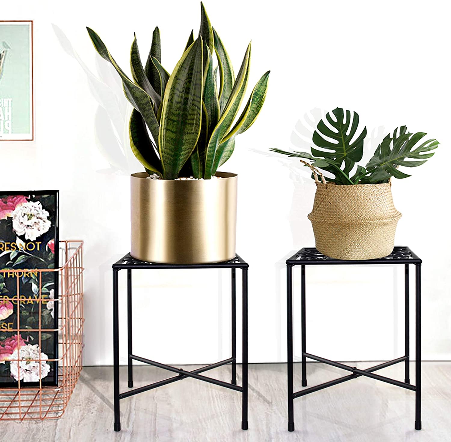 DENVDENCY Metal Plant Stand, 2 Pack Modern Metal Display Potted Rack,Rustproof Flower Pot Stand | Decorative Plant Holder for Home, Garden, Patio, Plant Lovers