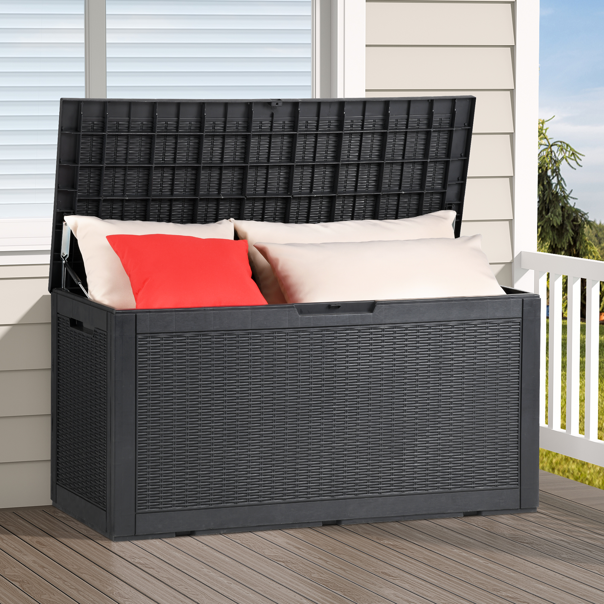 Vineego 82 Gallon Resin Deck Box Large Outdoor Storage for Patio Furniture, Weatherproof and UV Resistant,Black