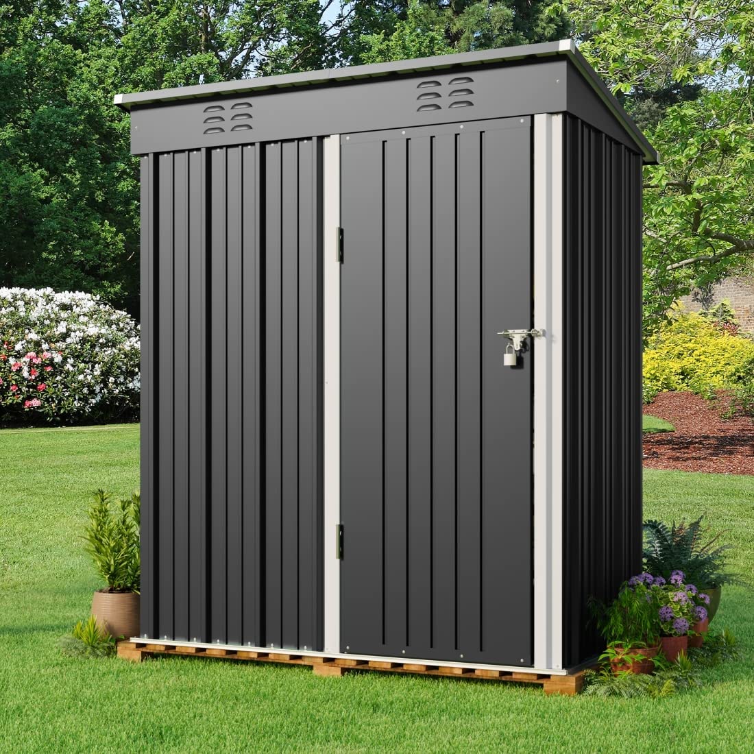 Lofka 5'x 3'Outdoor Storage Shed, Metal Outdoor Storage Cabinet with Single Lockable Door, Waterproof Tool Shed, Backyard Shed for Garden, Patio and Lawn,Grey