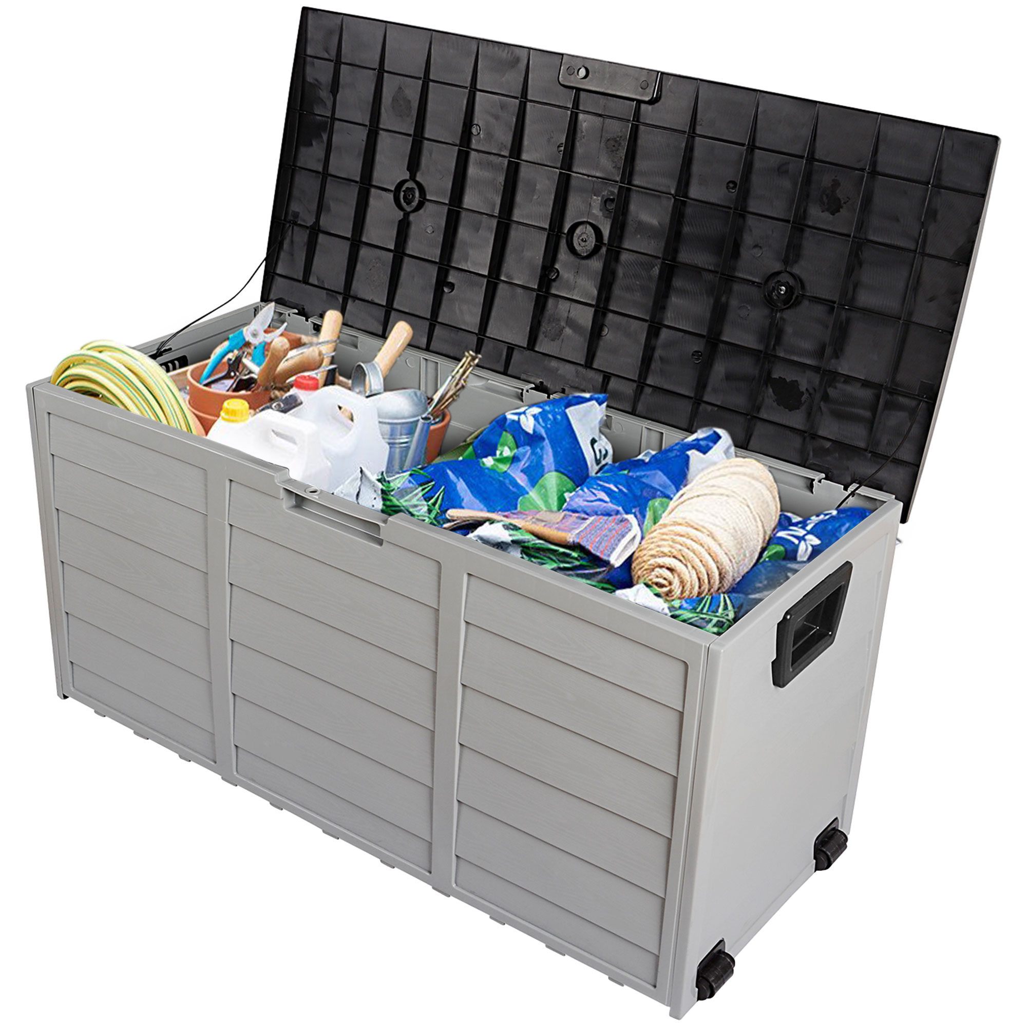 Seizeen 75 Gallon Resin Deck Box on Wheels, Patio Large Storage Cabinet, Outdoor Waterproof Storage Chest, Storage Container for Outside Furniture Cushions, Garden Tools, Kids' Toys, Black, D7226