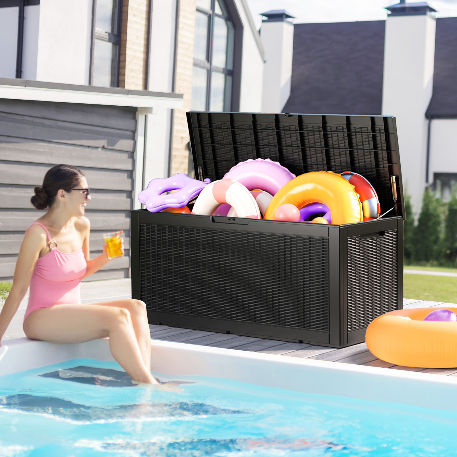 100 Gallon Large Deck Box,Outdoor Storage Box for Patio Furniture,Patio Cushions,Gardening Tools,Pool Supplies Waterproof Resin Storage Boxes