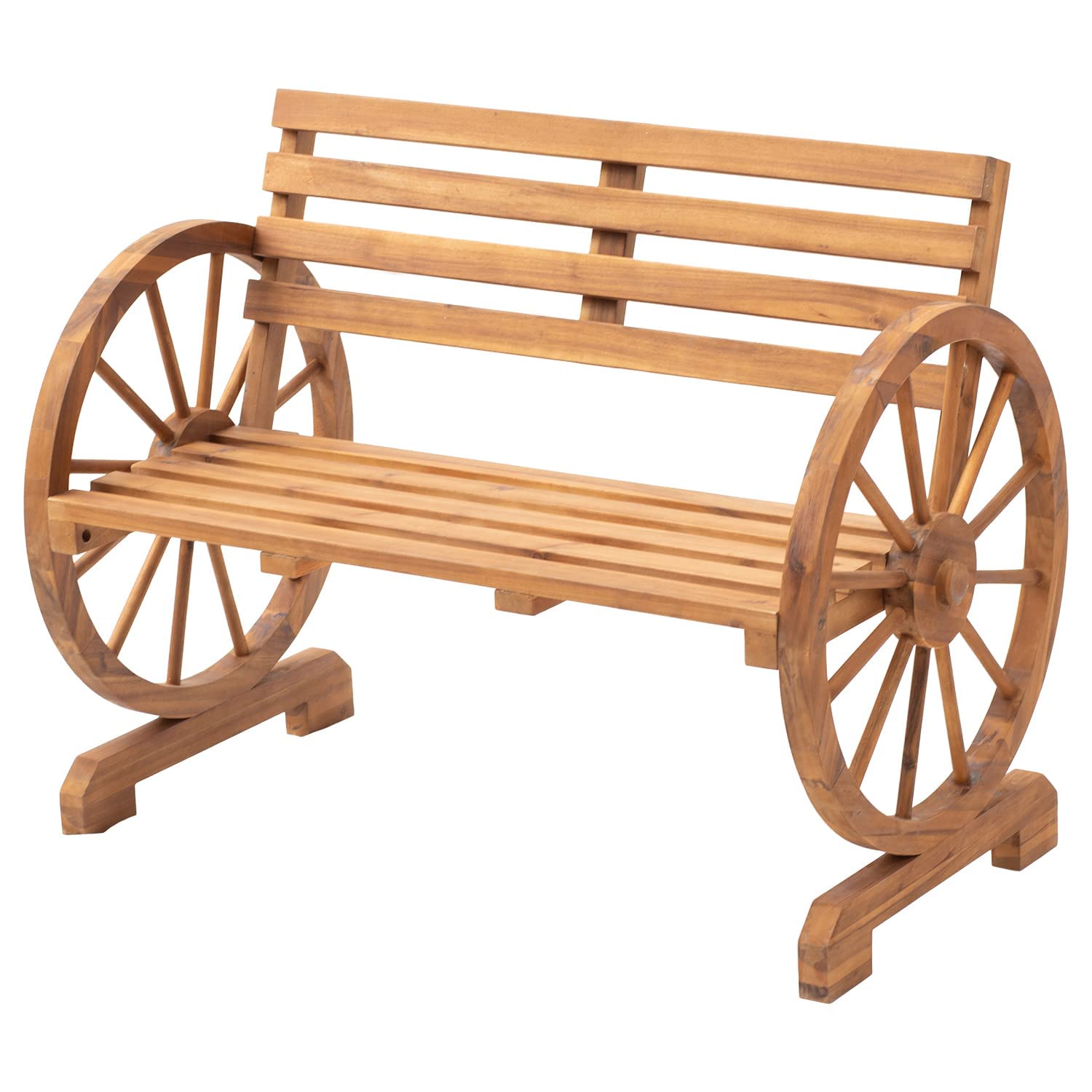 OverPatio Wooden Wagon Wheel Bench Rustic Outdoor Patio Furniture, Wooden Loveseat for Outdoor, Brown