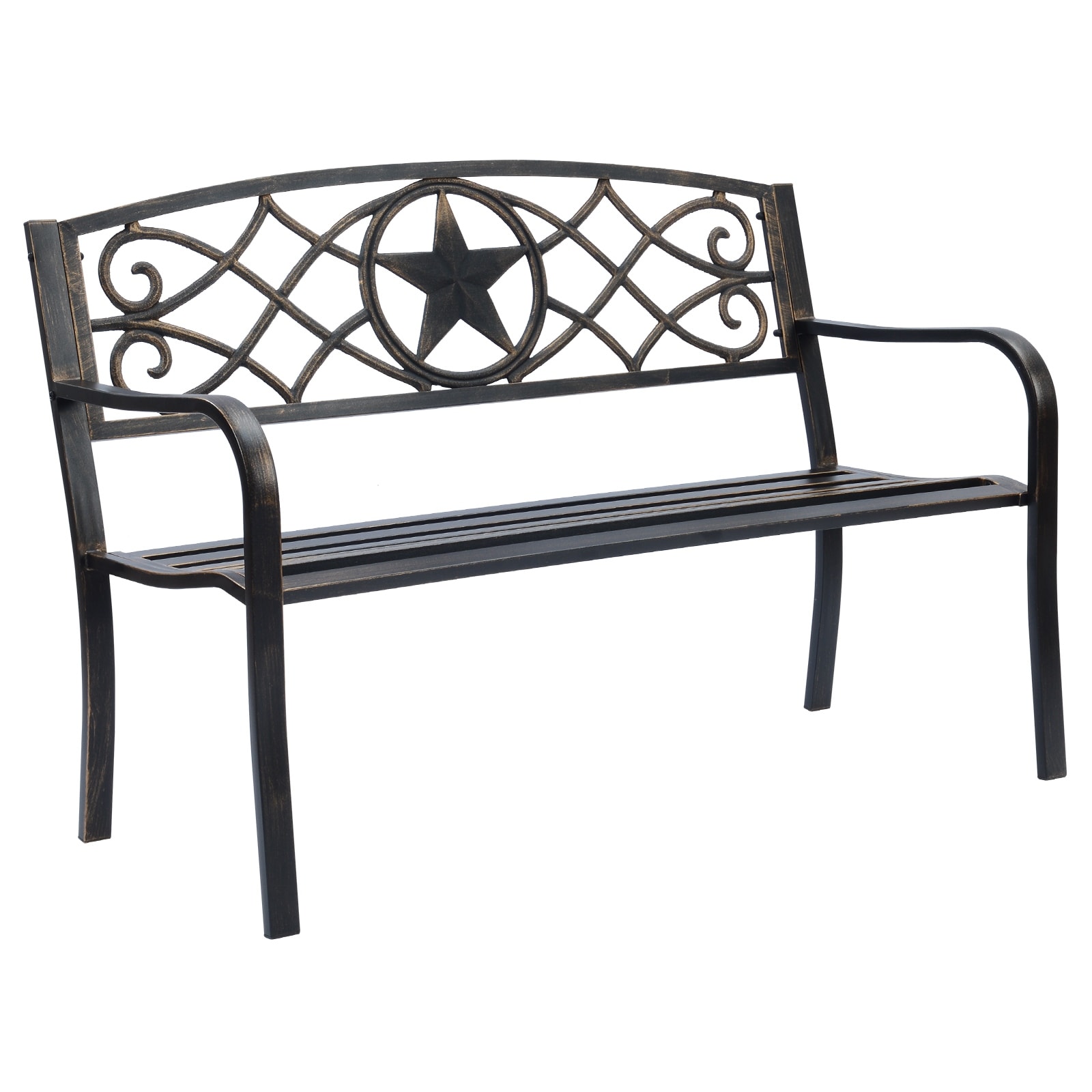 J&J Global Lone Star Metal Park Patio Bench, Outdoor Bench in Bronze for Porch, Lawn, Garden, Deck by Sun-Ray