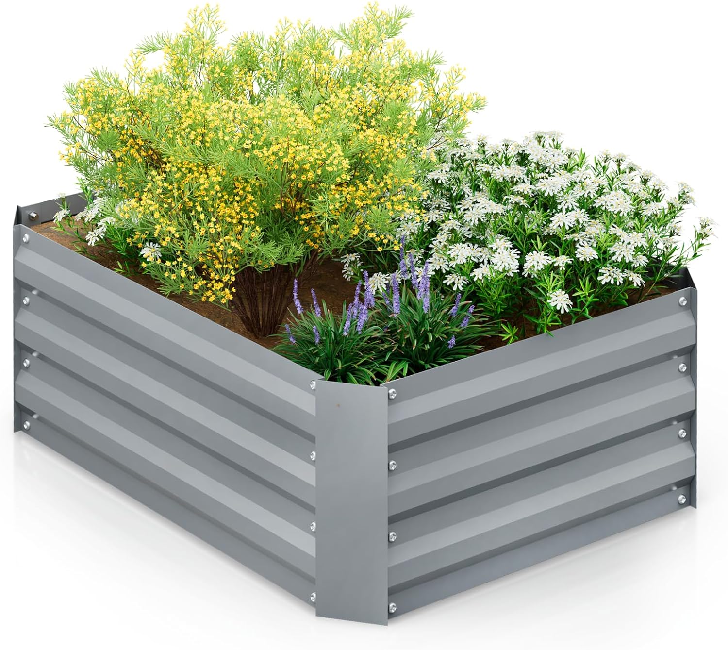 Yone jx je 32.08*11.4" Tall Round Raised Garedn Bed, Metal Raised Beds for Vegetables, Outdoor Garden Raised Planter Box, Backyard Patio Planter Raised Beds for Flowers, Herbs, Fruits, Silver