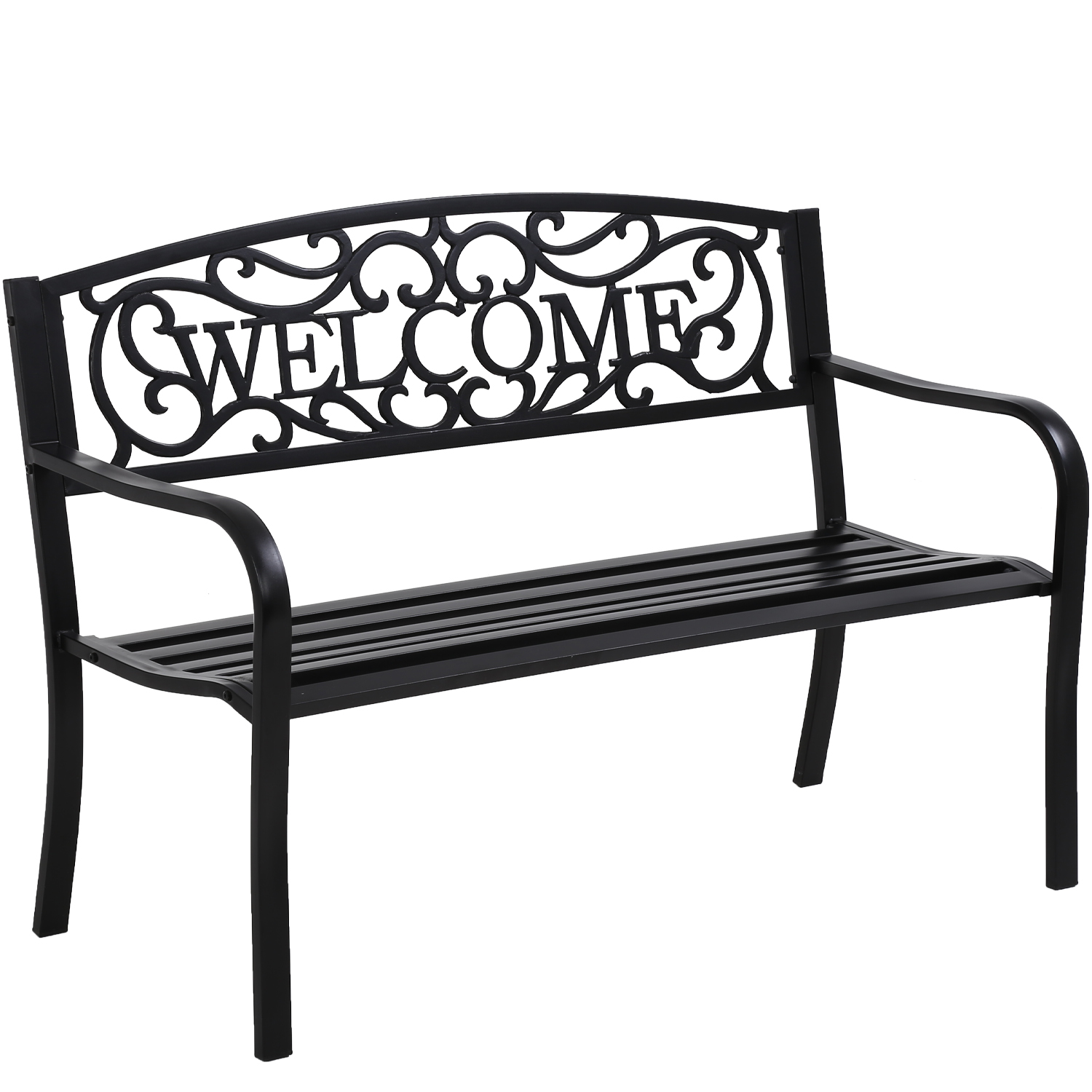 Costway 50'' Patio Garden Bench Loveseats Park Yard Furniture Decor Cast Iron Frame Black
