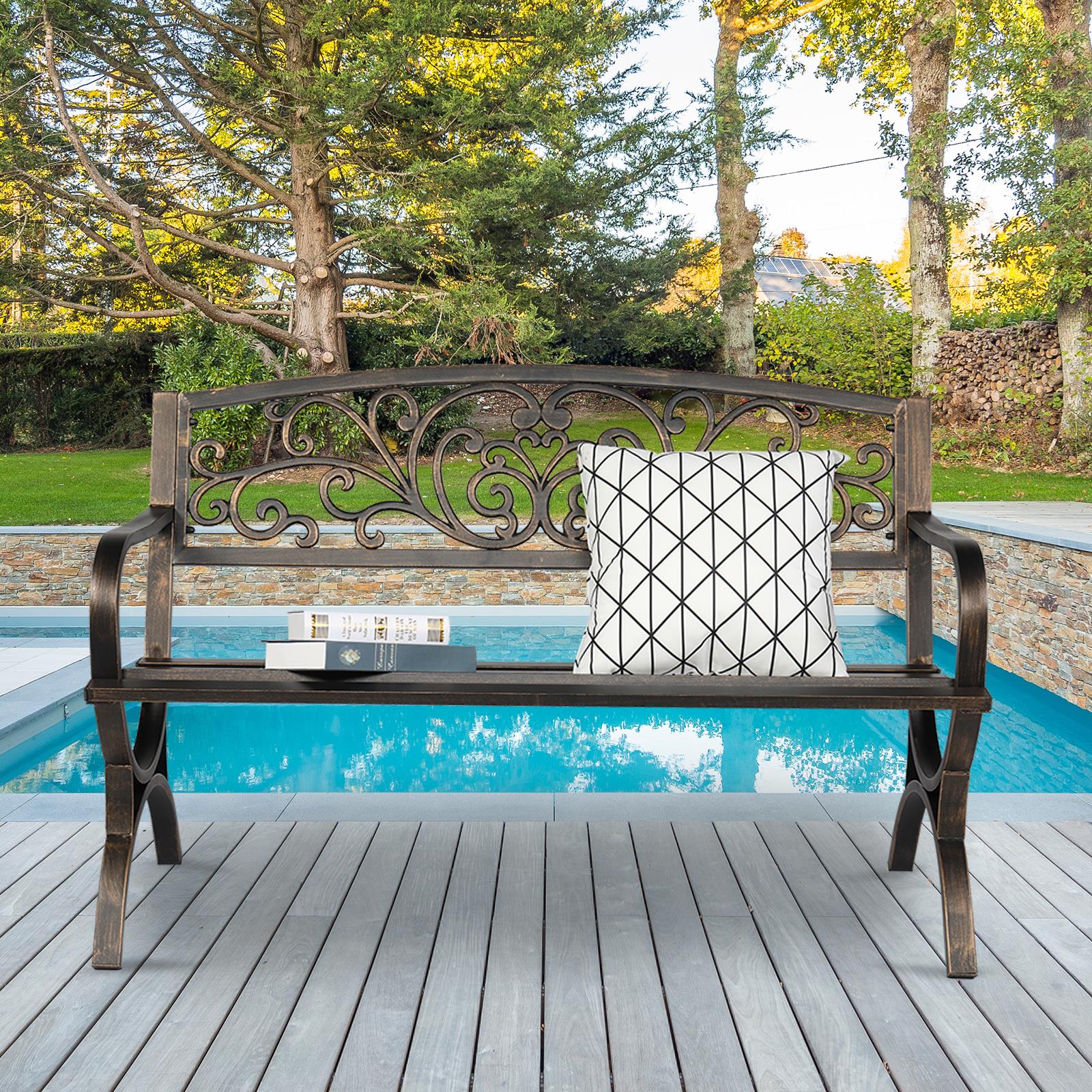 iTopRoad 50 Inches Garden Bench Outdoor Metal Bench Patio Garden Bench Sturdy Steel Frame Furniture for Yard, Outdoor, Park, Porch, Entryway, Lawn,(Bronze)