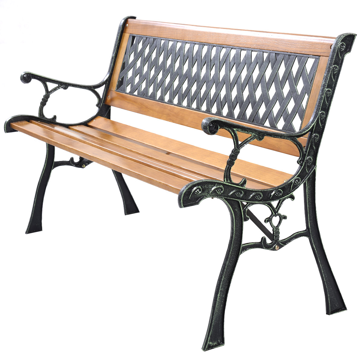 Patio Park Garden Metal Bench Porch Path Chair Furniture Cast Iron Hardwood