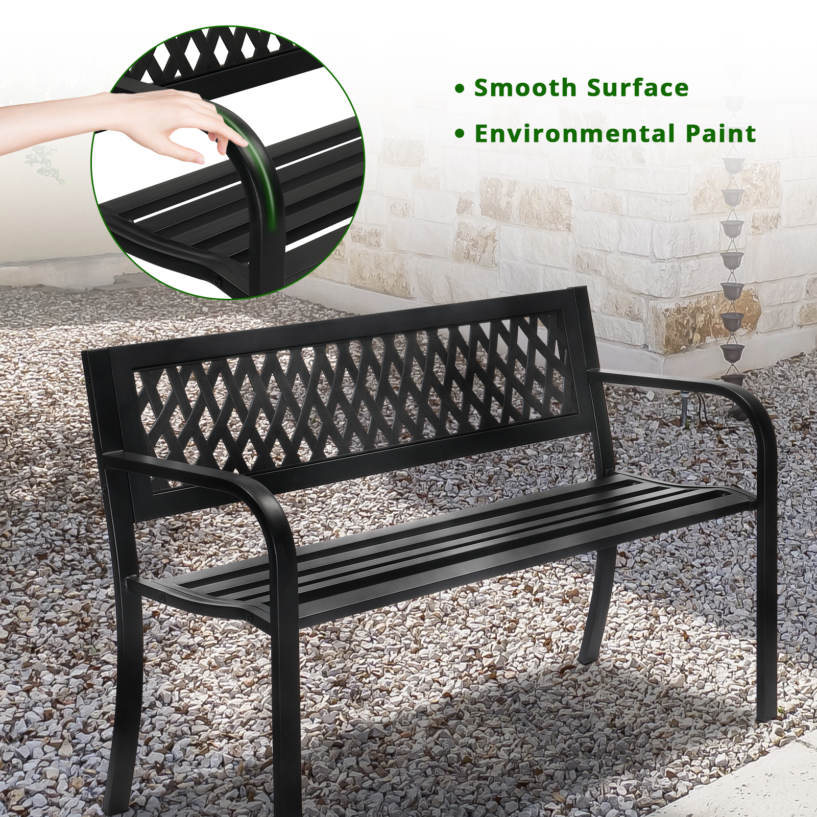 Costway Patio Garden Bench Steel Frame Park Yard Outdoor Furniture Porch Chair Black