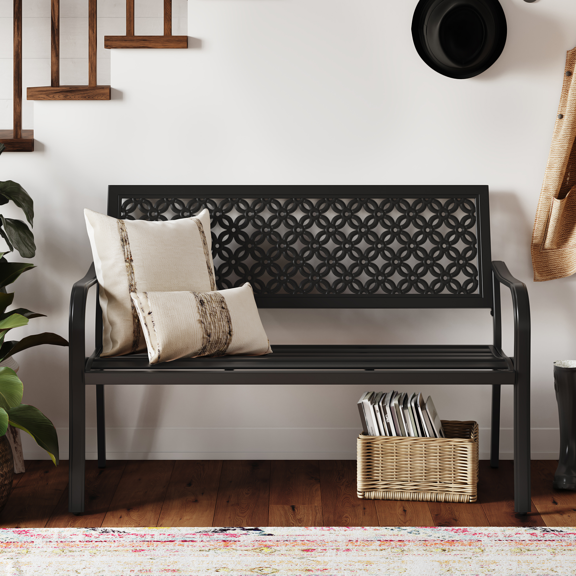 Grand Patio Outdoor Garden Bench with Back, Modern Metal Bench for Patio Front Porch Entryway Outdoor Dining Bench, Black