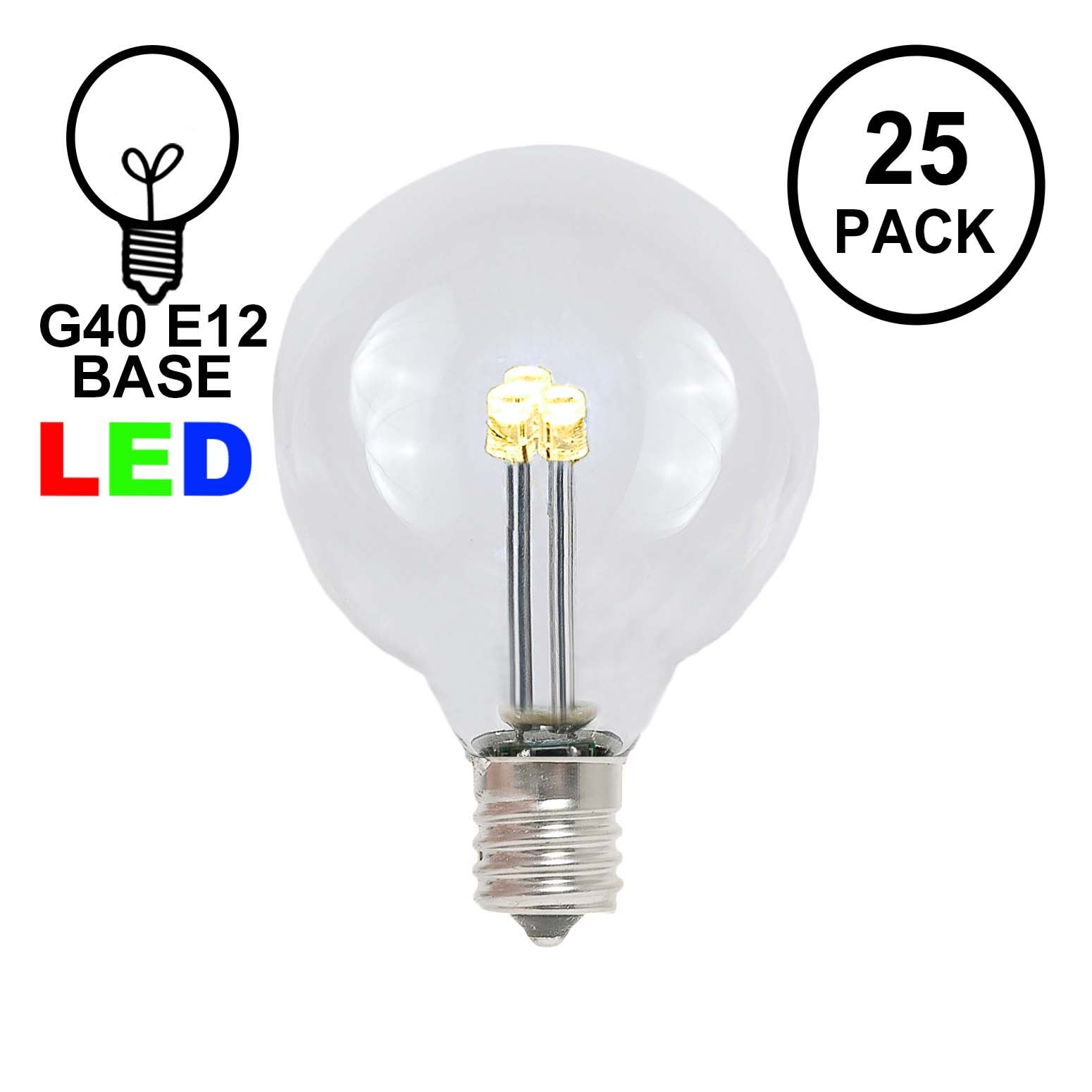 Novelty Lights 25 Pack G40 LED Outdoor String Light Patio Globe Replacement Bulbs, Warm White, 3 LED's Per Bulb, Energy Efficient