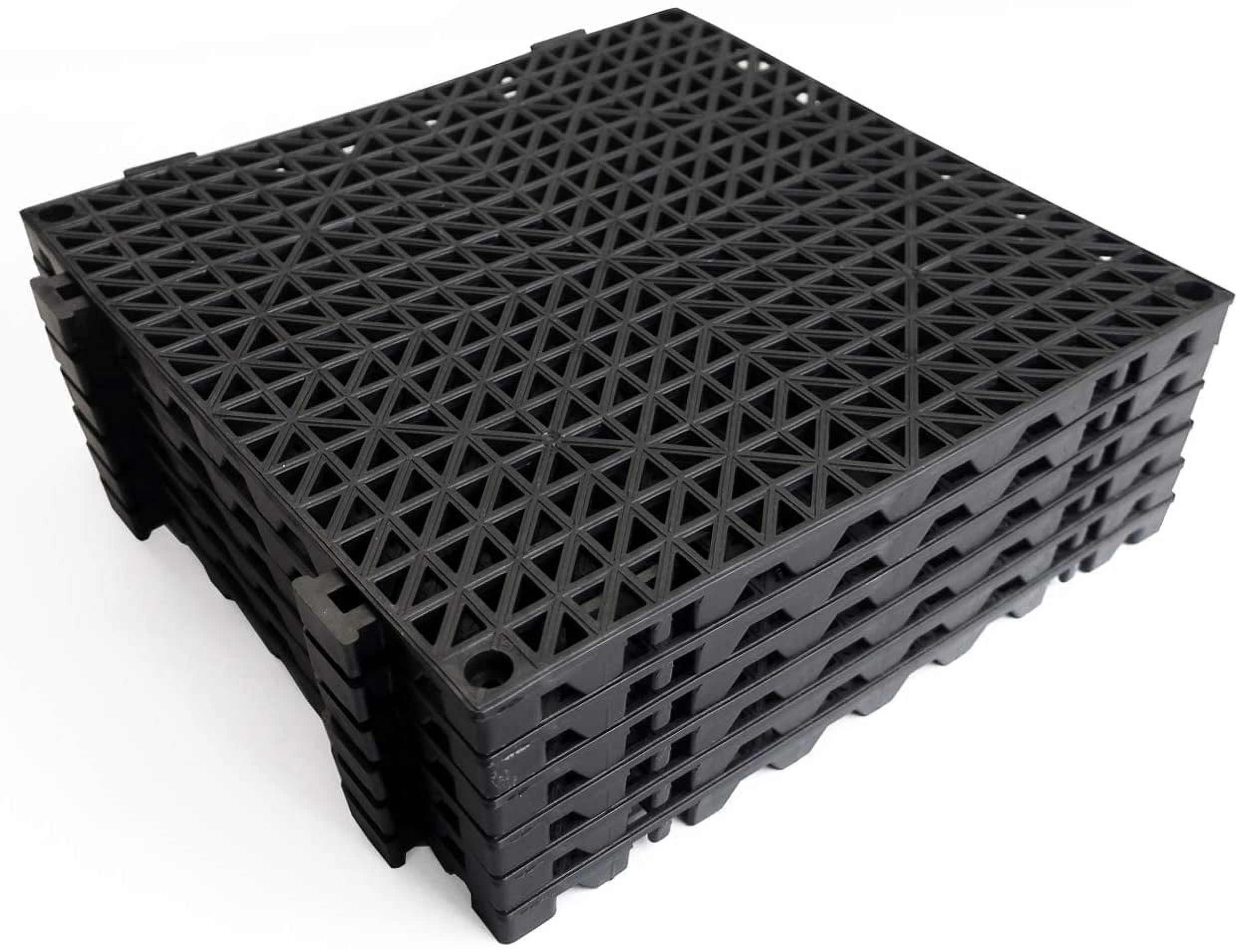VinTile Modular Interlocking Cushion Floor Tiles Mat Non-Slip with Drainage Holes for Pool Shower Locker-Room Sauna Bath Deck Patio Garage Wet Area Mat (Pack of 6 Tiles - 11-3/4" x 11-3/4", Black)