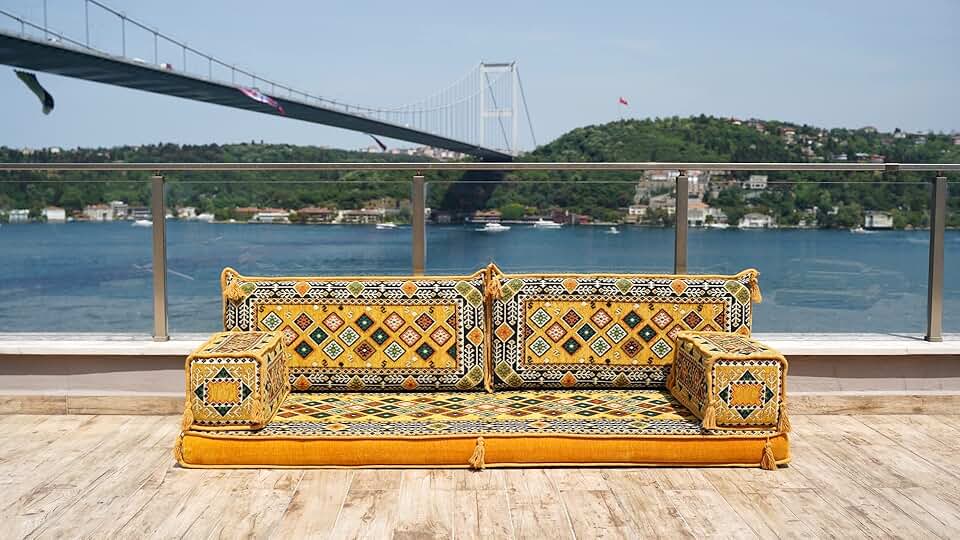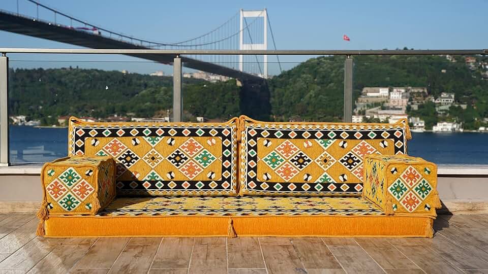 Yellow Sectional Sofa, Terrace Sofa, Floor Cushions, Arabic Majlis, Poufs, Turkish Floor Seating Set, Sofa Covers, Futon Sofa Bed (4'' Thickness Sofa)