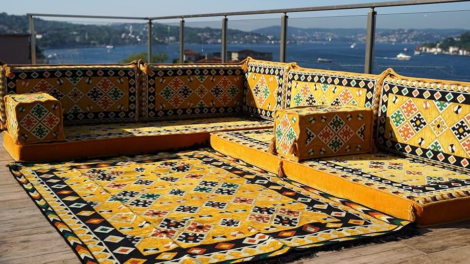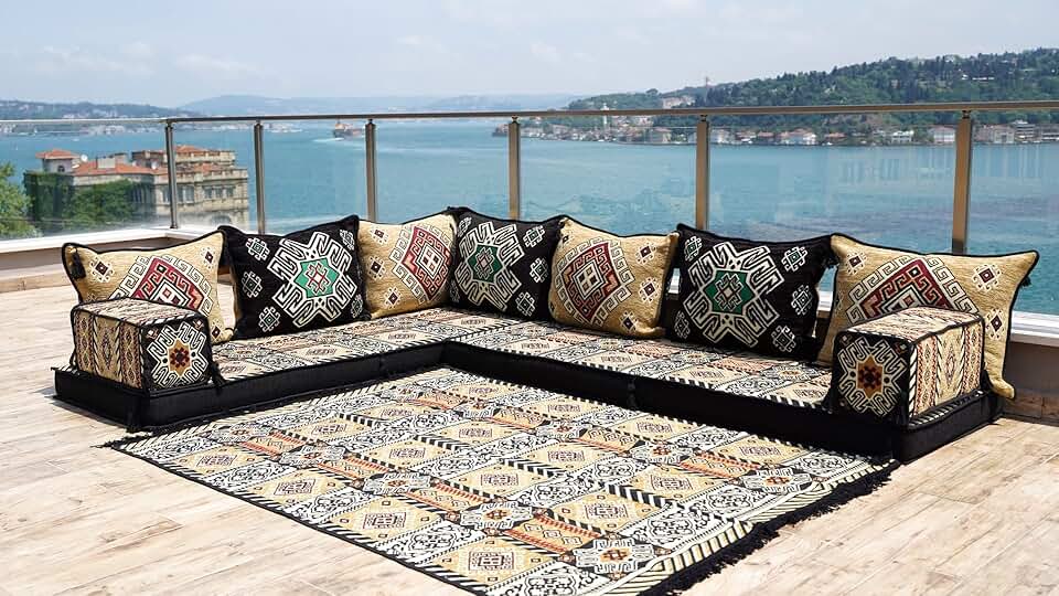 Bohemian Floor Cushion, Sectional Sofas, Turkish Floor Seating Set, Sofa Slipcovers, Cushion Couch, Sofa Bed (Sofa Only, 4'' Thickness (10 cm))