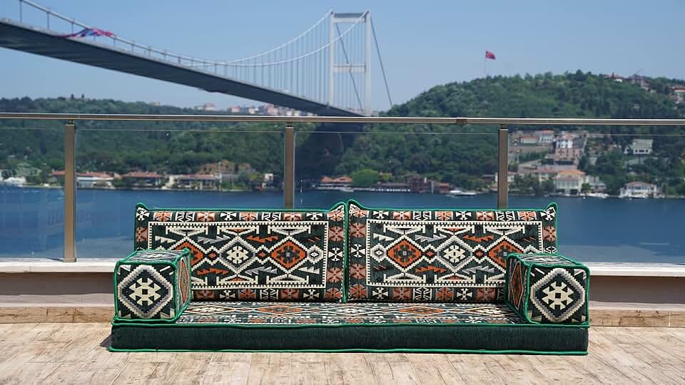 Green Patio Furniture, Living Room Floor Cushion, Arabic Floor Couch, Turkish Floor Cushion, Ethnic Sofa, Arabic Sofa Seating, Pillow Covers (Sofa Only, 4'' Thickness (10 cm))
