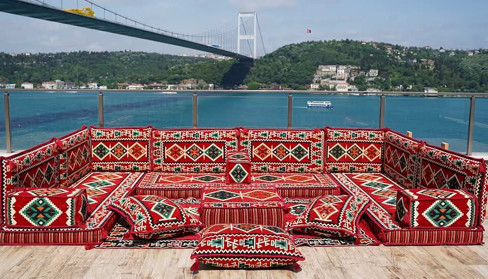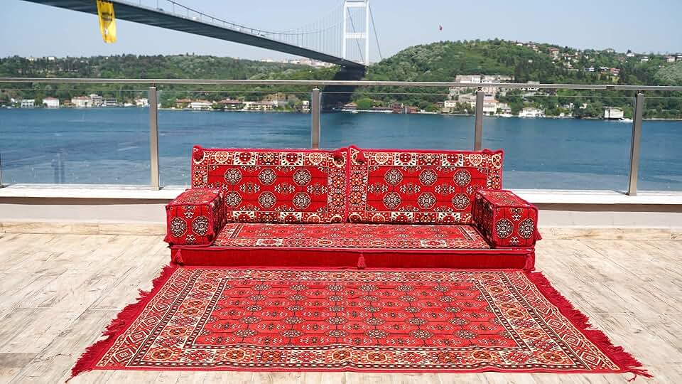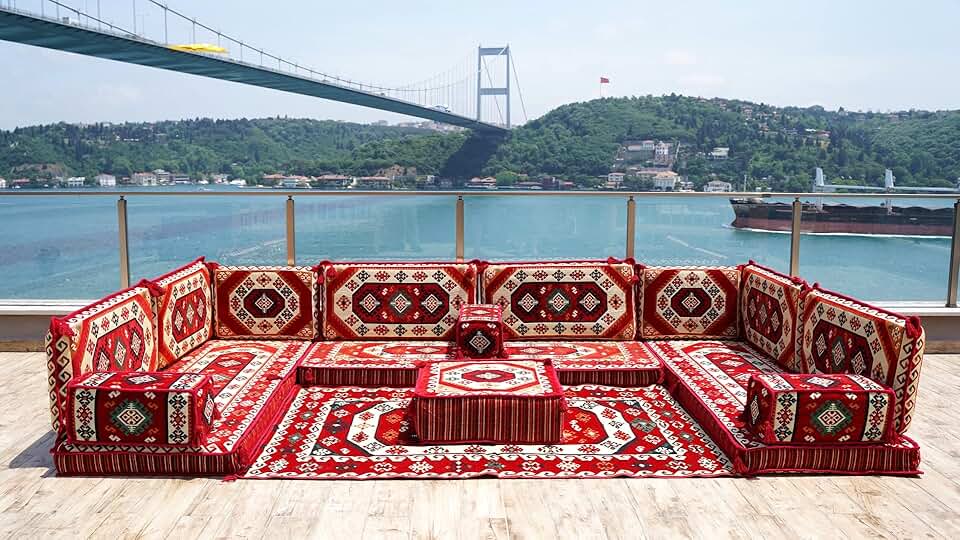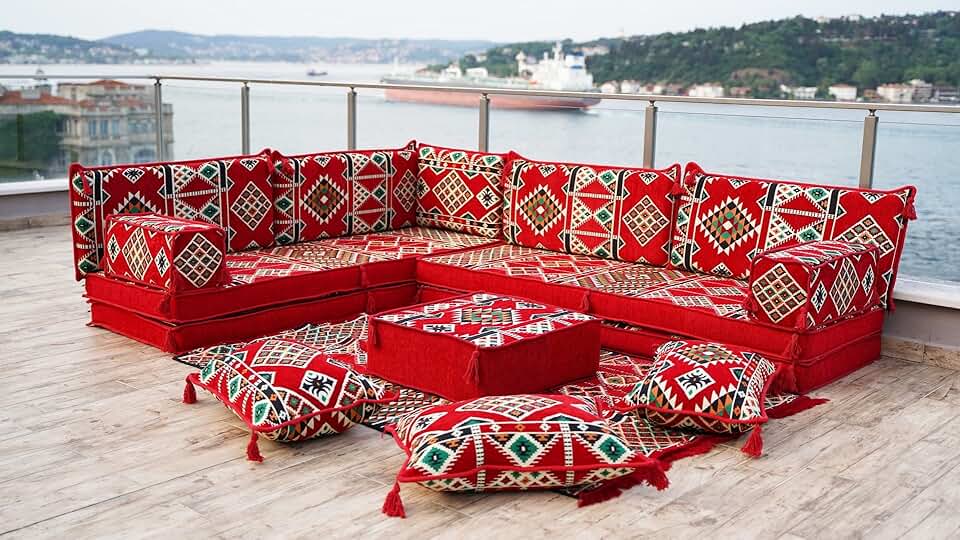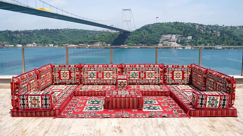 Loveseats, Sectional Sofa, Arabic Sofa Floor Seating Set, Pallet Sofa, Floor Cushions, Turkish Floor Sofa, Arabic Majlis, Kilim Rug Design (Red)
