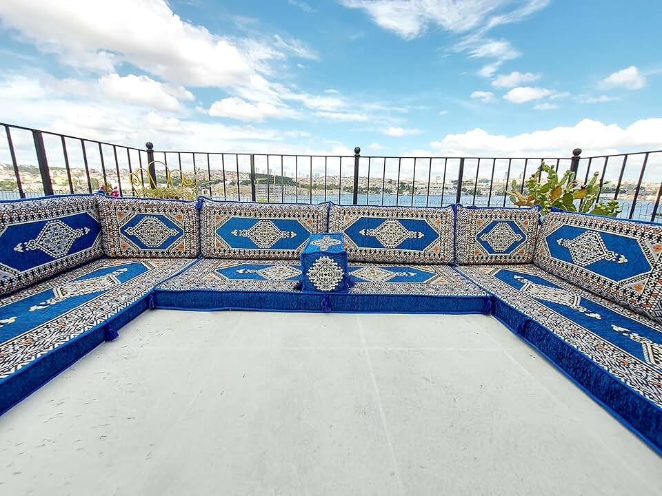 U Shaped Arabic Sofa Set, Terrace Pallet Sofa, Royal Blue Sectional Sofas, Floor Cushions, Arabic Majlis, Pouffs Turkish Floor Seating Set (U Sofas Only)