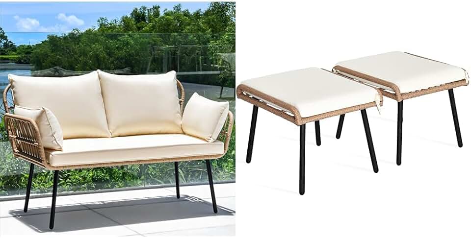 YITAHOME 2-Piece Wicker Love Seat Patio Sofa Set with Ottoman Foot Rest, Cushions, Lumbar Pillows, Outdoor Furniture for Patio, Balcony, Backyard, Deck, Poolside
