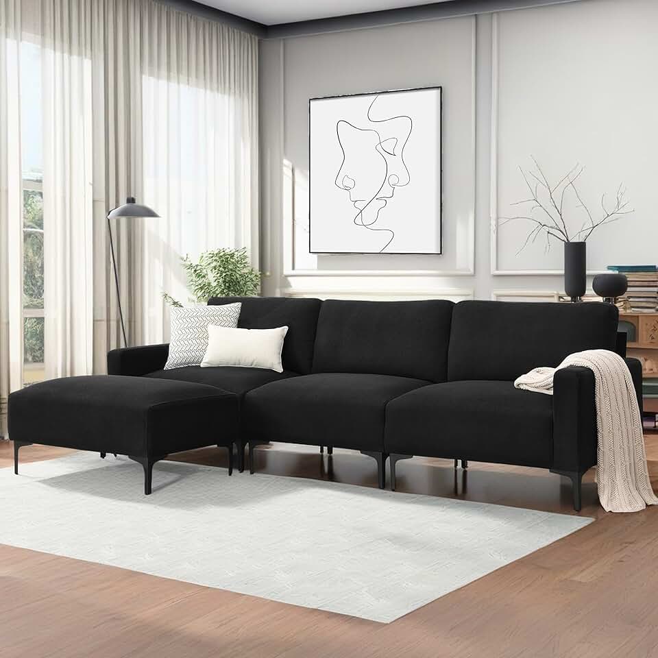 103.5" Velvet L-Shaped Sectional Sofa, Modern 4 Seat Couch Set with Convertible Ottoman for Living Room Apartment Office, Easy to Assemble